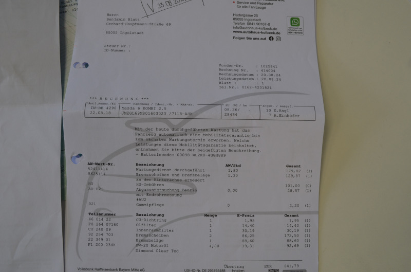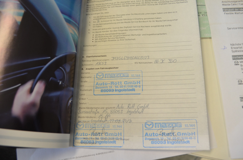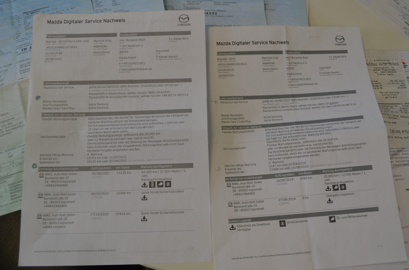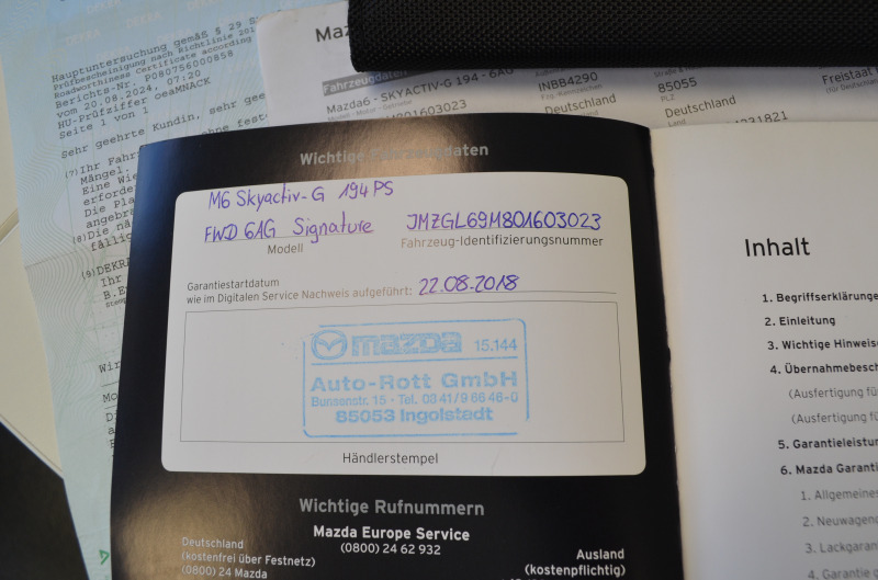 Pravidelný servis MAZDA s kompletnou servisnou históriou (od začiatku používania až po predaj). História aj na VIN čísle + vytlačená v papierovej forme + všetky faktúry z prehliadok z autorizovaného servisu Mazda + VŠETKY NEMECKÉ STK A EMISNÉ PROTOKOLY DOLOŽENÉ!!! Všetky servisy prevedené len v autorizovanom servise s kompletnou dokumentáciou. Auto je dovezené z Nemecka od súkromnej osoby (žiadne firemné auto, bolo servisované len v Mazda servis - km a históriu si môžete preveriť kdekoľvek v servise Mazda. Kilometre viazané zmluvou. Garážovaný stav, úplne maximálne zachovalé interiér aj exteriér. Krásny lak - ako nové. Po pedantnom majiteľovi v Nemecku. Na aute nebola žiadna vážna nehoda. V prípade záujmu pomôžeme s prihlásením na SK značky. Poplatok za kompletné prihlásenie na slovenské značky je 700,00 Eur s novou STK+EK a KO. Seriózna ponuka. Nový deklarovaný servis v Mazde pri 31.343 km (08.08.2025) - nový olej servis + filtre a výstupná kontrola + nové brzdové kotúče a platničky. Dovážame len seriózne vozidlá vo vysokých výbavách s pôvodnými km od prvých majiteľov. Servisná história a všetky kľúče od vozidla a palubná literatúra + pôvodná STK od majiteľa. *** Elegantné rodinné kombi pre nadšencov japonskej značky, so spoľahlivým agregátom. Odborníci a majitelia považujú tento agregát (2.5 Skyactive) za jeden z najspoľahlivejších vo svojej triede *** Vozidlo, ktoré určite ešte dlho poslúži *** Krásny kus ***