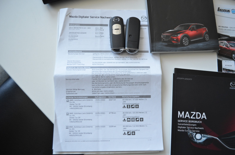 Pravidelný servis MAZDA s kompletnou servisnou históriou. História aj na VIN čísle. NEMECKÉ STK A EMISNÉ PROTOKOLY DOLOŽENÉ. Auto je dovezené z Nemecka od súkromnej osoby - 1. majiteľ (starší pán), auto bolo garážované v rodinnom dome. Originálny nájazd kilometrov viazaný kúpno-predajnou zmluvou. Km a históriu si môžete preveriť kdekoľvek v servise Mazda. Pri kúpe dostanete certifikát pravosti km - ODO-Pass + pôvodné protokoly z nemeckého servisu + STK doložené. Garážovaný stav. Krásny zachovalý lak. Žiarivá červená metalíza s hlbokým leskom. Na aute nebola žiadna nehoda a nebolo nikdy lakované (premerané meračkou laku). V prípade záujmu pomôžeme s prihlásením na SK značky. Poplatok za kompletné prihlásenie na slovenské značky je 500,00 Eur s novou STK+EK a KO. Seriózna ponuka. Dovážame len seriózne vozidlá vo vysokých výbavách s pôvodnými km od prvých majiteľov. Servisná história a všetky kľúče od vozidla a palubná literatúra + pôvodná STK od majiteľa. *** Šikovný, menší, mestský obľúbený crossover, benzínové autíčko pre nadšencov japonskej značky, so spoľahlivým agregátom. Odborníci a majitelia považujú tento agregát za jeden z najspoľahlivejších vo svojej triede, ktorý ponúka lineárny výkon a vysokú spoľahlivosť *** Vozidlo, ktoré určite ešte dlho poslúži *** Krásny kus ***