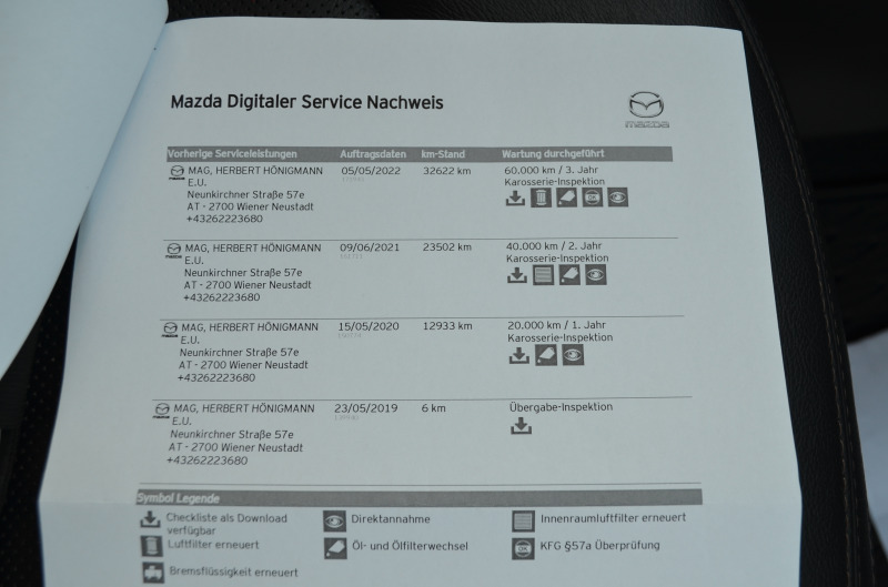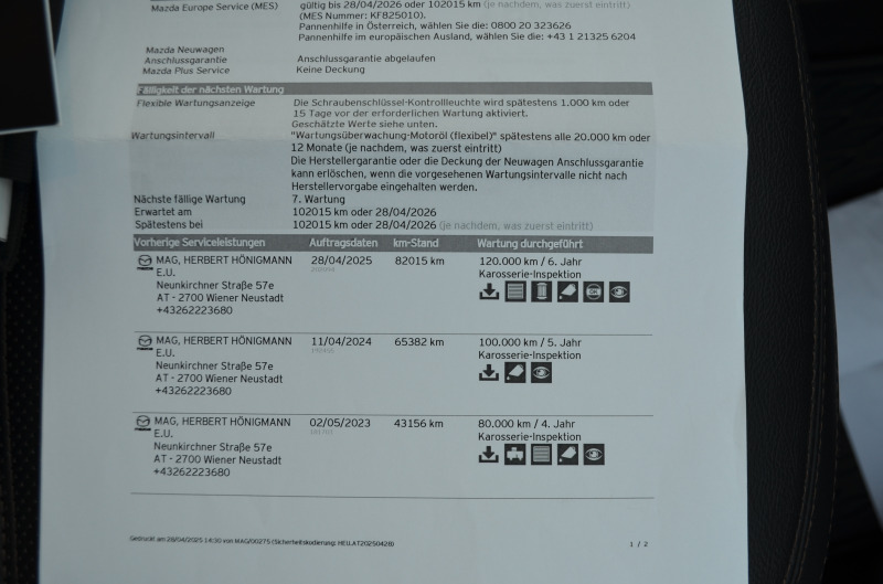 Pravidelný servis MAZDA s kompletnou servisnou históriou na VIN čísle. Všetky servisy prevedené len v autorizovanom servise s kompletnou dokumentáciou. Auto je dovezené z Rakúska od súkromnej osoby (žiadne firemné auto, bolo servisované len v Mazda servis - km a históriu si môžete preveriť kdekoľvek v servise Mazda. Na aute nebola žiadna vážna nehoda. V prípade záujmu pomôžeme s prihlásením na SK značky. Poplatok za kompletné prihlásenie na slovenské značky je 700,00 Eur s novou STK+EK a KO. Seriózna ponuka. Originál km s digitálnou históriou + pri kúpe dostanete certifikát pravosti km - ODO-Pass. Zachovalý stav. Posledný deklarovaný servis v Mazde pri 82.015 km (28.04.2025). Dovážame len seriózne vozidlá vo vysokých výbavách s pôvodnými km od prvých majiteľov. Servisná história a všetky kľúče od vozidla a palubná literatúra + pôvodná STK od majiteľa. Športovo-elegantné SUV pre nadšencov japonskej značky, so spoľahlivým agregátom s pohonom 4x4. Odborníci a majitelia považujú tento agregát (2.5 AWD) za jeden z najspoľahlivejších vo svojej triede.