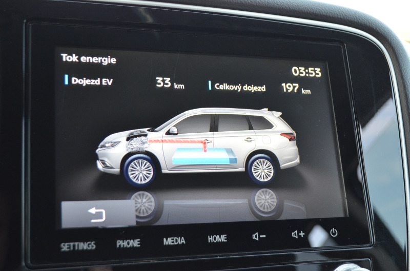 permanentný 4x4 pohon, športový režim, Hybrid 165 kW - Atmosférický benzínový motor 2,4-litrový radový štvorvalec 99 kW / 4B12 s technológiou MIVEC (elektronické riadenie časovania ventilov) bez turbodúchadla. Elektromotor predný 60 kW / zadný 70 kW (Hybrid s Plug-in nabíjaním). Motor je špeciálne upravený na prácu v tzv. Atkinsonovom cykle, čo zvyšuje jeho tepelnú účinnosť a znižuje spotrebu paliva na úkor maximálneho špičkového výkonu, ktorý v hybride kompenzujú elektromotory. Elektrický dojazd: Podľa metodiky je to približne 45 km, v mestskom cykle až 54 km. Rýchlonabíjanie (DC): Cez port CHAdeMO sa nabije na 80 % za približne 25 minút. Domáce nabíjanie (230V): Plné nabitie 13,8 kWh z klasickej zásuvky trvá približne 5,5 až 7 hodín. Pri pravidelnom nabíjaní je udávaná kombinovaná spotreba 2,0 l/100 km; pri vybitej batérii v hybridnom režime stúpa na cca 7,0 – 9,0 l/100 km. Bezstupňová (e-CVT) automatická prevodovka, ktorá simuluje plynulý záber. Kožený multifunkčný volant s tempomatom, farebná parkovacia kamera, odnímateľné ťažné zariadenie, 8-palcovým displej infotainment, ktorý podporuje Apple CarPlay a Android Auto + zrkadlenie Vášho smartfónu + Google Maps Touch, Bluethoot, dažďový senzor, stmavené zadné sklá, inteligentné zam / odomykanie vozidla a veľa inej výbavy ...