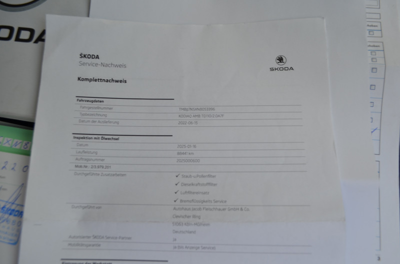 Pravidelný servis ŠKODA s kompletnou servisnou históriou aj na VIN čísle. Dovoz Nemecko. V prípade záujmu prihlásime komplet na SK značky 500, - Euro. TOP zachovalý Kodiaq vo výbave Clever s agregátom s min. spotrebou 5,2 l. Elegantný interiér a šedo-sivá metalíza - Briliant Silver Metallic. Seriózna ponuka. Originál km s digitálnou históriou. Zachovalý stav - auto je úplne zachovalé. Krásny lak. Nefajčiar. Zmluvne garantované kilometre a pôvod vozidla. K autu dáme komplet faktúru s DPH s možnosťou odpočtu pre firmy a platcov dane. Dovážame len seriózne vozidlá vo vysokých výbavách s pôvodnými km od prvých majiteľov a s odpočtom DPH. NEMECKÉ AUTO. Veľmi starostlivo udržiavané. Slušný stav. Krásne rodinné SUV z dielne ŠKODA vo výbornej výbave a super spotrebou. Veľmi elegantné autíčko. Auto nebolo nikdy havarované. Nemecký poctivý servis. Posledný servis v Škodovke pri 88.441 km (16.01.2025) - longlife servis. Auto je vo veľmi zachovalom stave. 2x kľúče od vozidla + 1x pilot od Webasta a palubná literatúra. Km si viete preveriť kdekoľvek v Škoda servise aj na Slovensku podľa VIN čísla. Možný odpočet DPH pre firmy. Pekný kus a super výbava.